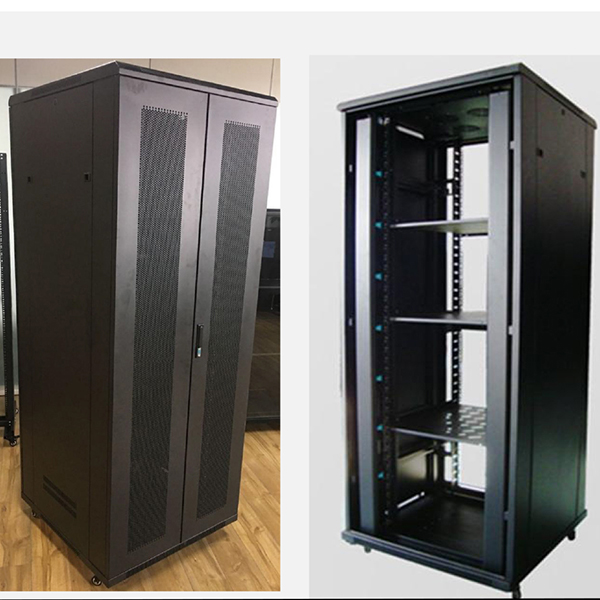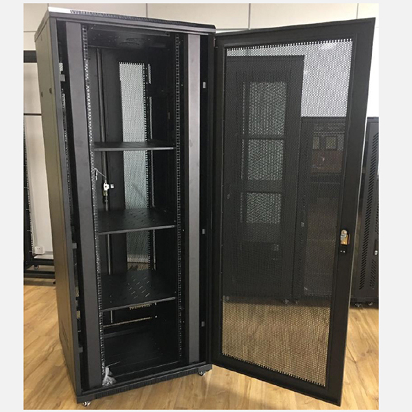 材質:SPCC 優質冷軋鋼板; 前門平面單開網孔門(六角網孔),配黑色大旋轉鎖 后門平面單開網孔門(六角網孔),可改成雙開網孔門 側門塑料卡扣,可快速拆卸,也可加小圓鎖 前門安裝 2 根垂直帶蓋理線槽,方便布線 可關閉的上部,下部多處走線通道,底部走線孔尺寸可按需調整 可同時安裝腳輪和支撐腳;