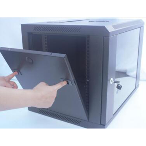 側門塑料卡扣,可快速拆卸,可選配安裝小圓鎖 后門有掛墻板,方便掛墻安裝設計 可方便拆卸的左右側門和前門,全方位操作,多方位察看 可關閉的上部,下部多處走線通道